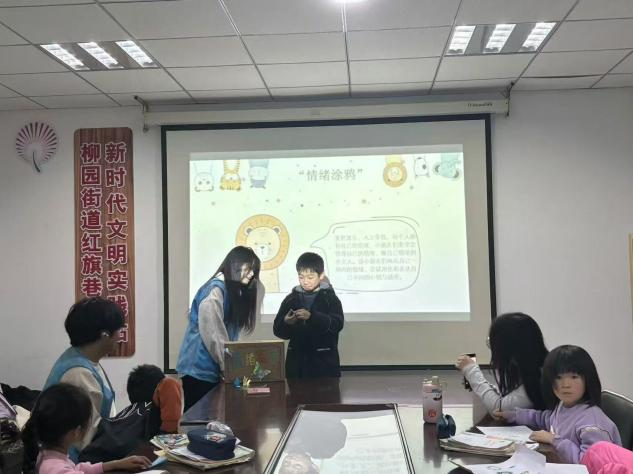 活动伊始,刘冬梅借助精彩的影视片段顺利引入情绪主题,使小朋友们对情绪建立起初步的认知。紧接着,志愿者们凭借趣味课堂的创新形式,让小朋友们在欢乐玩耍中深入洞察自身情绪。