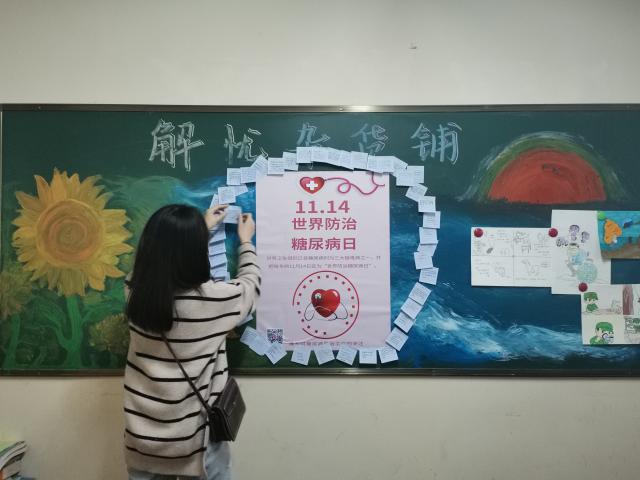 糖尿病被称为现代疾病中的第二杀手。目前,糖尿病发病率逐年上升,糖尿病发病呈现出扩大化和年轻化趋势。 2019年11月14日是第13个“联合国糖尿病日”,为配合联合国糖尿病日“蓝光行动”计划,提高同学们对预防糖尿病的重要认识、普及预防糖尿病知识、呼吁同学们采取积极健康的生活方式,11月14日,73882必赢网页版举办了“防控糖尿病,我们在行动”主题活动,倾诉与倾听工作室成员及73882必赢网页版60名同学参与此次活动。
