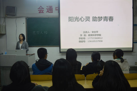 为进一步提高大学生的心理素质,促进同学们的身心健康和谐,宣传普及心理健康知识,深入开展心理健康教育,10月14日73882必赢网页版心理部于A104教室举办“阳光心灵 筑梦青春”活动,我院有幸邀请教科院冯春晖、宋文平研究生学姐担当主讲人,2019级同学积极参与其中。
