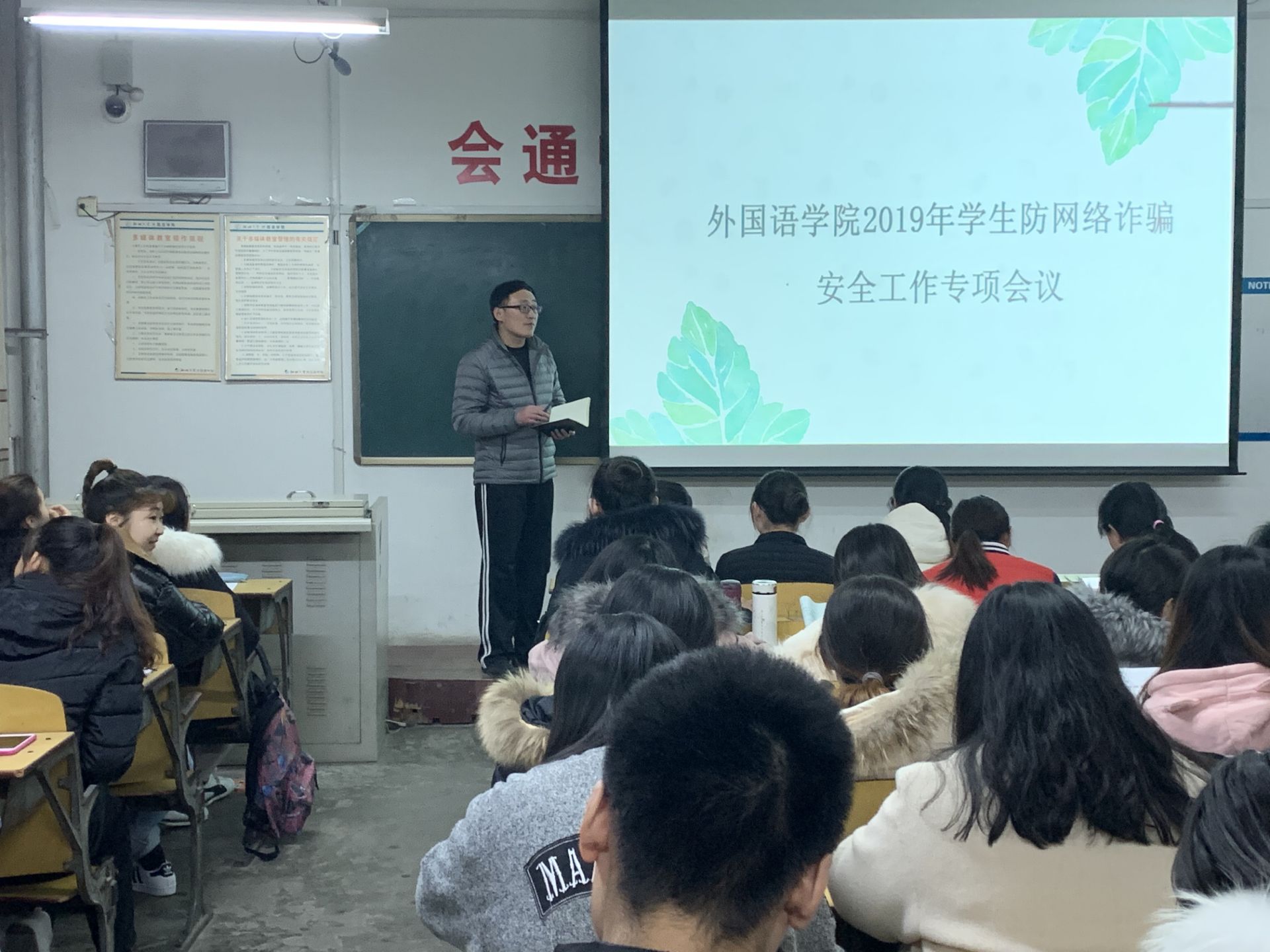 为提升学生预防网络诈骗的能力,增强安全防范意识,切实保障学院学生们的利益,11月27日,学院于西校区1#C208召开防网络诈骗安全工作专项培训会。会议由73882必赢网页版团委书记魏京祥主讲,18级、19级学生代表参与此次培训。
