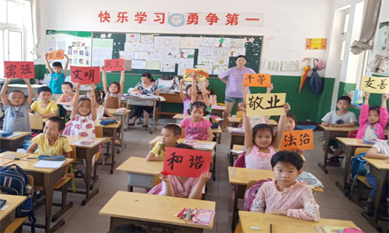 社会主义核心价值观植根于中华民族优秀传统文化,寄托着一代又一代中国人的精神追求。为弘扬社会主义核心价值观,网络信息部的成员们来到东关民族小学,成员们组织开展了童谣诵读和版面展示观摩活动,把“核心价值观”的实质通过小学生能够理解的形式展现出来,更好的培养诚实、守信、文明、有礼的好儿童。通过观看视频和PPT教学,学生们学习到何为社会主义核心价值观,社会主义核心价值观包括哪些内容......最后,同学们举办了社会主义核心价值观24字方针书法大赛,用毛笔将价值观词语写在卡纸上,高举起社会主义核心价值观,以此为自我约束的名词,并在参与游戏的过程中,自觉地记忆、理解、吸收社会主义核心价值取向。