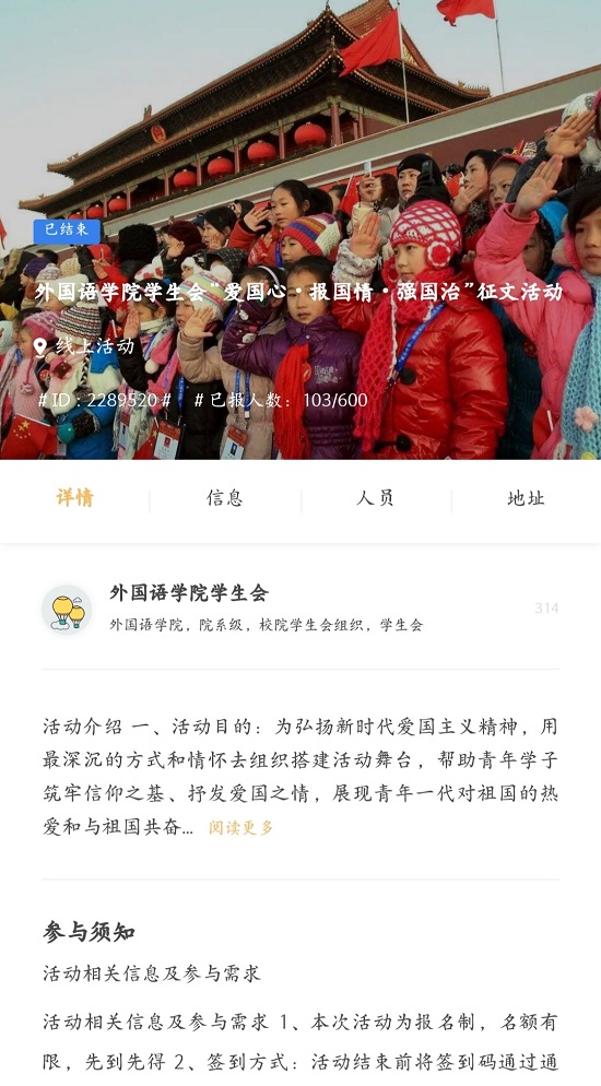 本次活动相关负责人以“爱国心·报国情·强国治”为主题进行线上征文比赛,并对优秀作品进行评选。同学们在文章中紧紧围绕此次活动主题,通过在生活和实践中的所见、所闻、所感,以自己的视角,自己的语言,自己的体验,自己的方式,向伟大祖国告白,表达爱国之心,倾吐报国之情,抒发强国之志,体现了同学们的爱国精神和励志精神,为更好的构筑中国精神、中国价值、中国力量表明了态度与决心。