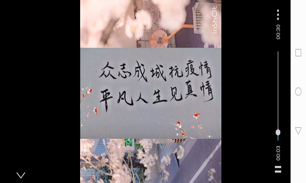 抗击疫情在路上,传统文化来助力。此次线上活动的创办别出心裁,形式多种多样,可以录制京剧视频传递众志成城的真情,可以录制一段相声来坚定抗“疫”必胜的信心,也可以拍摄自己的书法作品来表达暖心祝福……同学们录制的视频妙趣横生,尽显真情。王莹洁同学制作的病毒动画,为大家展示了新冠病毒的形状和结构,简单的构图却清晰明了的解答了大家对于冠状病毒的疑问;李有为同学录制了一段京剧选段,希望借此来表达自己对抗疫一线人员的感谢与敬意;褚佳琦同学书写的“众志成城抗疫情,平凡人生见真情”这几个铿锵有力的大字,表达了对武汉的美好祝愿。全妍同学剪辑出了抗“疫”战中许多感人的画面,其中最感人肺腑的是疫情期间志愿者为前线抗疫人员免费送餐的画面,寒冷的天气因有了热气腾腾的饭菜而温暖了许多,真可谓“锦上添花易,雪中送炭难”。一个个立体的画面表现出了对一线工作人员的无声关心。许多同学还用自己独特的方式展现了抗击疫情工作中的人性美,流露出了真情实感。让我们共同为祖国致敬,携手共盼春风佳音。