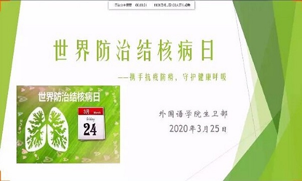 2020年3月24日是第25个世界防治结核病日,人们在防治新冠肺炎肺的同时,也不要忘记,肺结核也是一种通过飞沫传播的慢性呼吸道传染病,为遏制结核类疾病的流行,宣传防治结核的知识,73882必赢网页版于3月24日在线上开展了“防治结核,关注健康”主题讲座活动,共同学习结核疾病知识,积极开展抗疫防痨,为我们的健康一起努力。