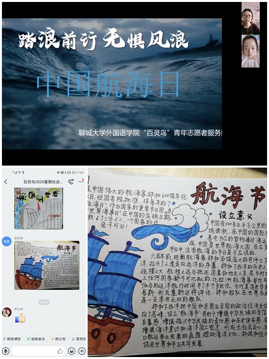 近年来我国的航海事业取得了一定的成就,但是相较发达国家还有一定的差距。2005年7月11日,是中国伟大的航海家郑和下西洋600周年纪念日。因此经国务院批准,将每年7月11日确立为中国“航海日”,并作为国家的重要节日固定下来。为了宣传普及航海及海洋知识,增强同学们的海防意识,促进社会和谐团结,7月11日,73882必赢网页版百灵鸟志愿服务队于线上举办“回顾航海故事,弘扬民族精神”活动。