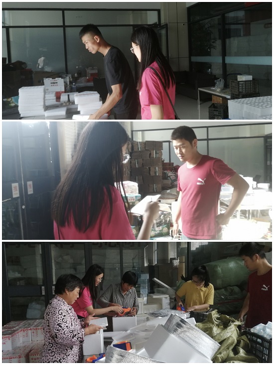 活动过程中,实践团队成员在相关服务人员的带领下参观了公司的客服部和销售部,基本了解了该公司利用电商平台推广农产品的服务中心和销售渠道。随后实践团队成员还向公司负责人就公司发展、农产品加工转化、销售流程等方面提出了相关问题,负责人耐心细致地给予了解答,使同学们对科技助农等方面有了新的认识。为了进一步深入了解农产品加工和推广过程,在公司负责人的带领下,同学们参观了公司目前季度所加工销售的农产品,认真观看了每种产品的加工打包流程,并在服务车间工人的带领下进行了尝试,使同学们感触颇深,受益匪浅,真正领略到了科技在农业生产方面所带来的巨大便利。