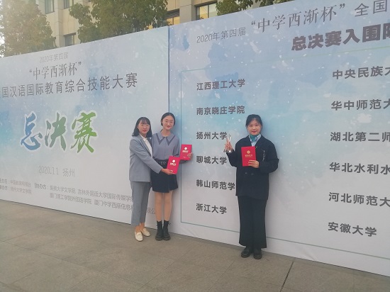 2020年第四届“中学西渐杯”全国汉语国际教育综合技能大赛总决赛于11月8日在扬州大学落下帷幕,此次全国技能大赛总决赛共有来自全国的18支参赛队伍参加,在与各大院校进行激烈角逐后,聊城大学汉语国际教育专业参赛队成功获得了一等奖的好成绩。