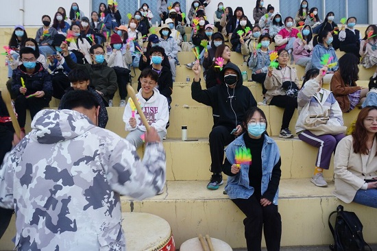 “红花绿叶”相辅相成,相得益彰。运动员是驰骋赛场的拼搏者,观众也是赛场上耀眼的闪光点,他们用关切的目光展现团结的力量,用飘飘彩旗舞动青春的激情,用令人热血沸腾的呐喊唱响生命乐章中最响的音符,点燃青春的梦想。