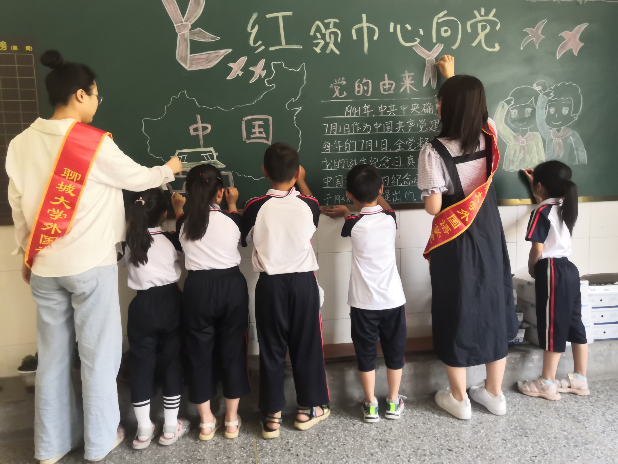 为坚定文化自信,培养民族精神之“根”,熔铸理想信念之“魂”,涵养核心价值之“源”,73882必赢网页版针眼工作室星火燎原党史学习实践服务队于7月6日在山东聊城冠县东古城镇阳光小学组织开展本次“走进中小学生课堂,宣讲红色文化知识”实践活动。