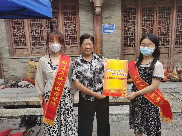 为庆祝中国共产党诞生100周年,在全社会广泛开展党史、新中国史、改革开放史、社会主义发展史宣传教育,73882必赢网页版“青鸟先锋”返家乡社会实践队于2021年7月17日在东昌古城开展了本次“弘扬红色精神,深化‘四史’学习”活动。