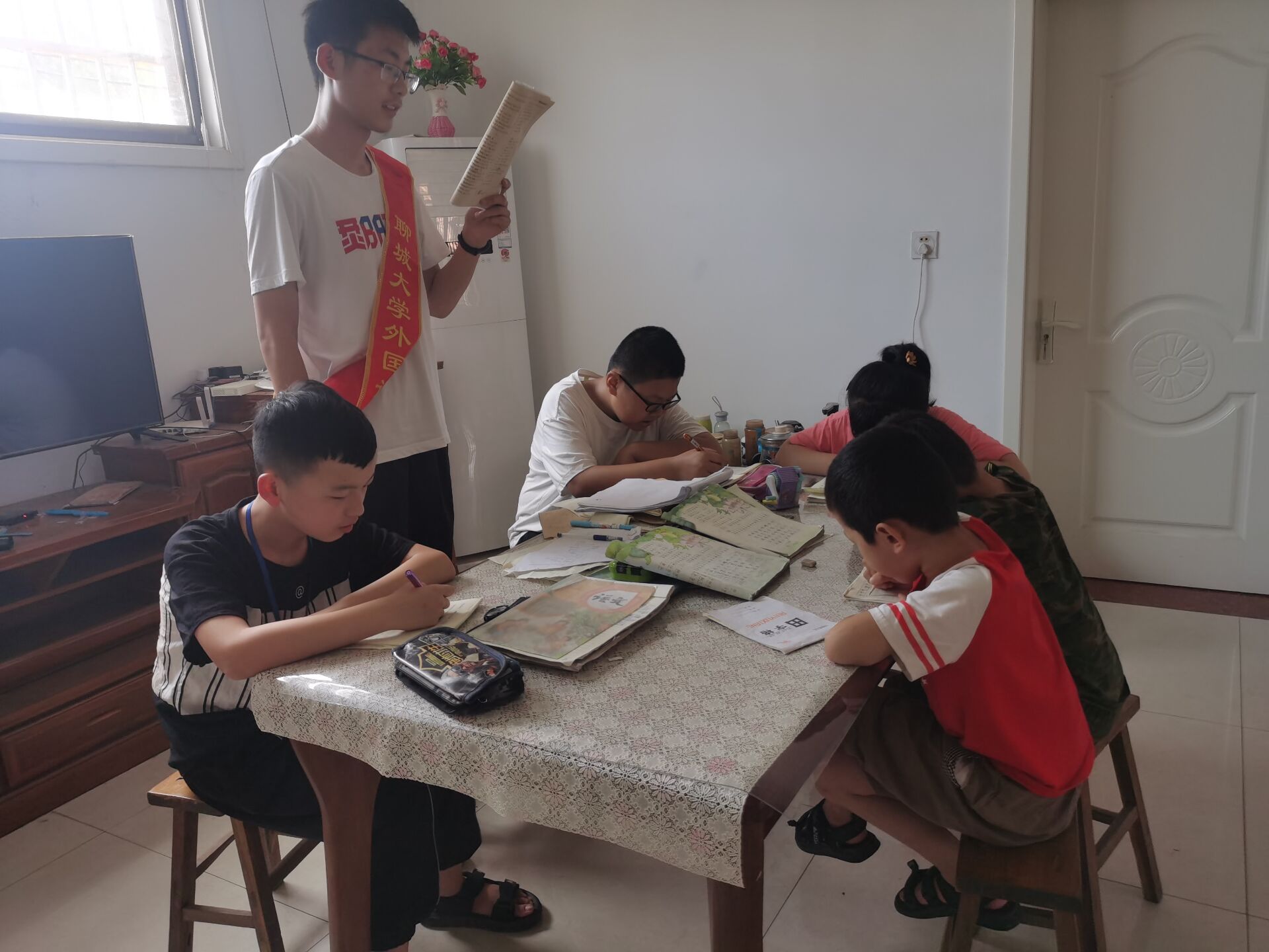 活动前期,志愿服务队成员们了解到暑假有大部分小学生因父母外出工作在家中比较无聊,再加上放暑假的心理影响,很有可能会待在家里上网、看电视,会荒废掉很多学习时间,从而出现开学忘记上学期所学内容等情况,还有可能对自己的身体健康产生消极影响。于是成员们走进小学生的家中,为小学生免费辅导功课,带去关爱,除此之外,成员们还带领小朋友们进行体育锻炼,开展户外活动,给小朋友们普及过度沉迷于网络的弊端,鼓励小朋友们走出家门进行室外活动,在玩乐中学习更多新的知识。成员们还针对每个小朋友的不同情况,定制了专门的教学方法,深受小朋友们的好评,让孩子们在学习和玩耍中健康成长。最后,志愿服务队成员们和小朋友们合影留念,活动圆满结束。