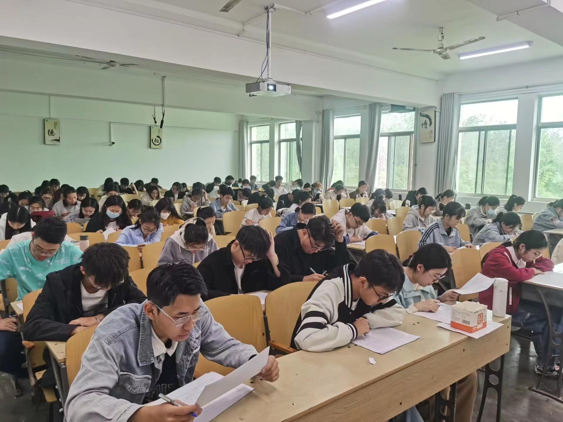 本次大赛开场时间为9点30分,参赛学生提前十分钟到场,由比赛负责人提前五分钟到场随机抽取比赛题目,题目包括一篇命题作文和一篇读后续写,由参赛学生自带纸笔答题。比赛期间,同学们聚精会神、沉着应赛,并有专门负责人进行监督,会场秩序井然、气氛良好,比赛过程公平公正,参赛选手于90分钟内完成作品并及时上交。作品上交后,由评审团统一对作品进行评定。