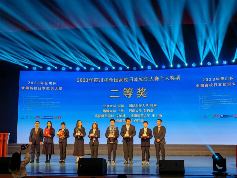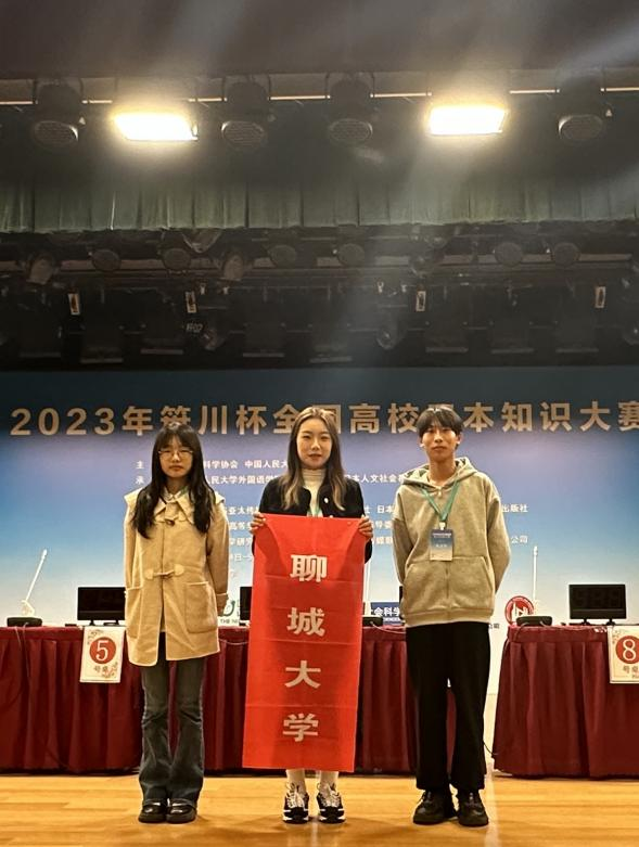 11月4日-5日,2023年笹川杯全国高校日本知识大赛总决赛在中国人民大学拉开帷幕。我院日语系学子在荣苗苗老师的带领下参加了本次比赛。其中大四学生王欣荣获个人赛二等奖,由大四学生王欣、大三学生刘雪晴、大二学生韩亚军组成的聊城大学代表队获得团体赛优秀奖。
