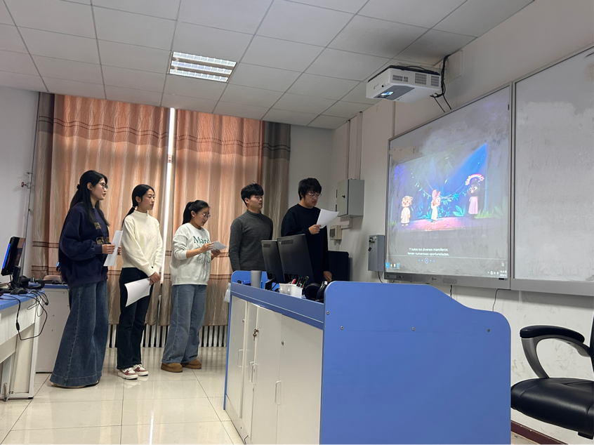 为提高我院西语系学生口语表达能力及现场演讲能力,增强团队凝聚力与协作能力,丰富校园文化生活,展现大学生朝气蓬勃积极向上的精神状态。73882必赢网页版西班牙语系系于2024年12月9日在73882必赢网页版举行了西语配音比赛,五名教师担任评委,刘锦瑞担任主讲人。西班牙语系的各位同学积极参加。
