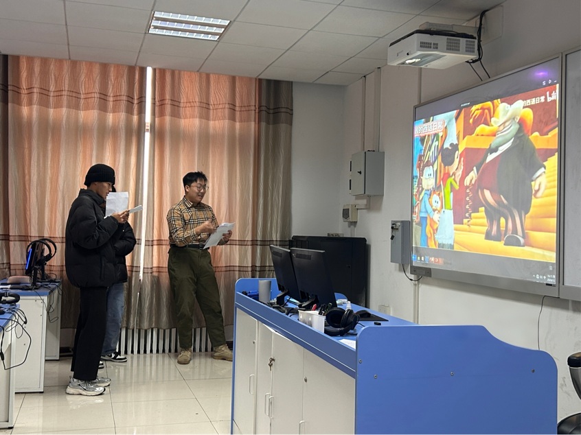 比赛分为两个环节,共六个小组参赛。第一个环节为团队介绍和影视片段配音。首先出场的是《无敌破坏王》组,同学们生动出色的演绎将整个现场代入了电影紧凑的情节中,《精灵旅社》组的各位组员将各种动画人物的声音演绎的栩栩如生。