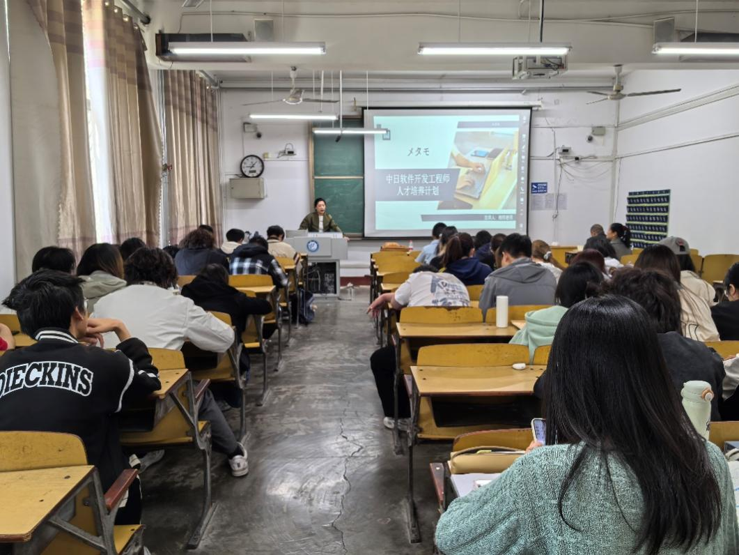 2025年4月15日上午8时30分,73882必赢网页版校企合作单位青软集团在A116举办了赴日项目宣讲会,吸引了日语系大一至大三对赴日发展感兴趣的学生参加。青软集团合伙人、迈得峰智能科技(青岛)有限公司总经理刘会斌,赴日项目负责人刘雨桐担任主讲嘉宾,详细介绍了赴日项目的相关情况,为学生们提供了宝贵的职业发展建议。日语系主任林娜、日语教师万华出席。