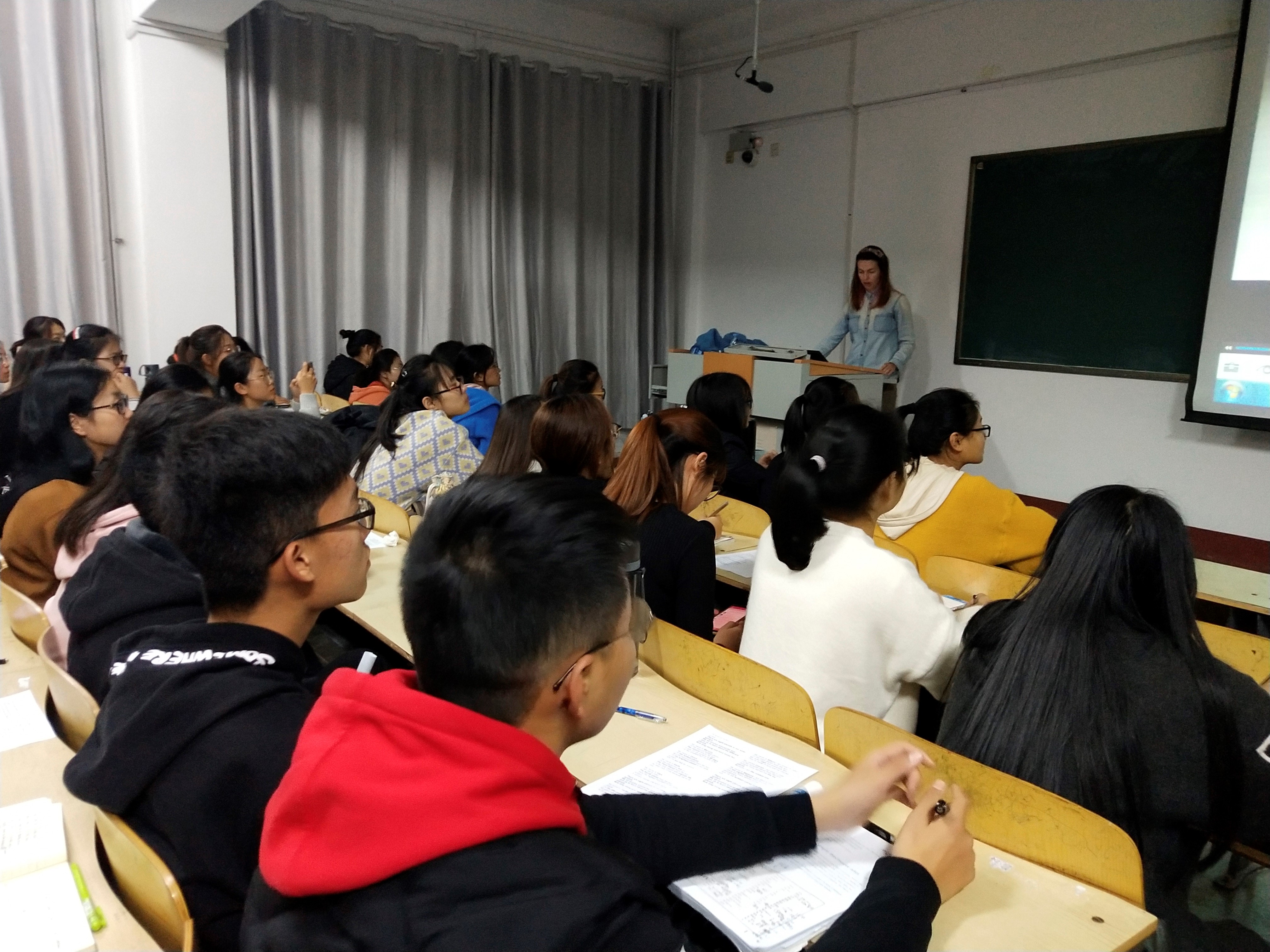 11月5日晚,73882必赢网页版在西校区8号教学楼309教室举办第一届外教英语沙龙。在此次活动中,Alex老师带领同学们踏上了探寻太阳系的奇妙旅行。首先,Alex老师介绍了本次沙龙的主题—太阳系的奇妙旅行,并通过一段英文VCR进一步介绍了太阳系的运行机制,以及各个行星的相对位置、距离、体积大小等天文知识。在观看的同时,她为同学们进行详细地讲解,让大家了解到大量的天文英语词汇,丰富了同学们的英语词库。与此同时配合PPT进行讲解,使同学们置身神秘的宇宙,很快融入此次沙龙的学术氛围中。