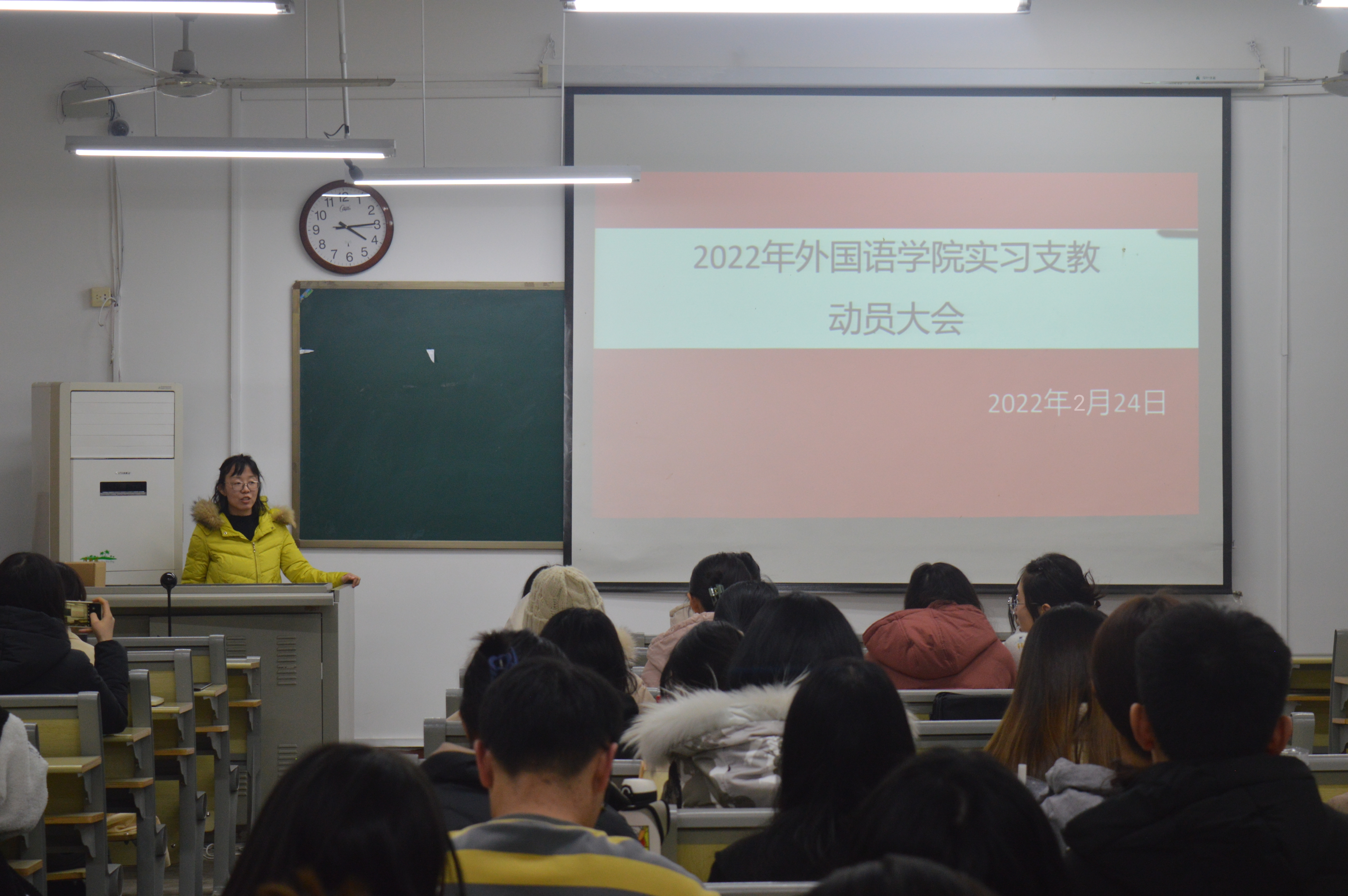 李艳芹老师对黄老师的讲座做了总结,并叮嘱大家实习过程中在保障自身安全的同时热情地投入支教工作,在向前辈们学习的同时为当地注入新鲜血液,带去先进的教学理念与方法。最后,支教学生纷纷表态,将牢记使命担当,不忘学校重任,保证圆满完成支教任务。