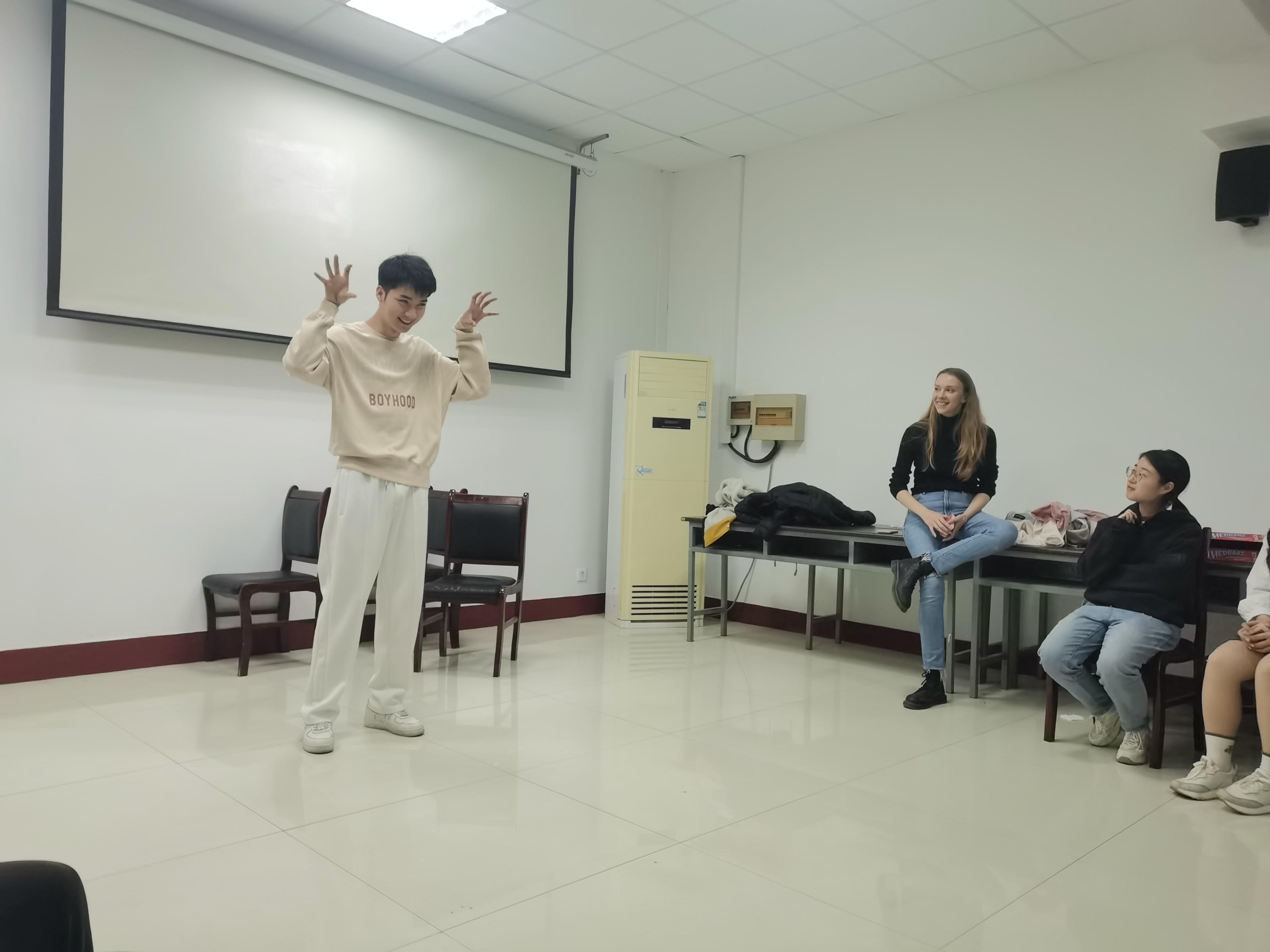 活动主要由各种各样的英语听说表达活动组成,外教Ann带领学生们通过游戏互动展开自然的交流,并以此来提高学生的英语实践运用能力。活动在愉快的热身环节中展开,在有趣的“交换座位”小游戏中,每位同学都需聚精会神听他人的英文指令,同时做出迅速的反应,通过这个游戏在有效的锻炼听力能力和反应能力的同时,每位同学都有机会展示自己,表达自我。而后随即开展的“你划我猜”和“名牌小游戏”更是使同学们在轻松愉快的环境下游戏交友,同时还能够加强对卡片上单词含义的理解。在此过程中,外教老师积极和同学们互动,细心地为同学们讲解正确规范的英语表达,鼓励同学们开口说出自己的观点,用英语流利地表达自己的思想,引导同学们想说,敢说,一起说。参加的学生也积极配合,对活动内容展现出了浓厚的兴趣。他们从紧张到勇敢地表达自己的观点,从陌生到与搭档愉快玩耍、合作完成任务,活动在一片欢声笑语中落下帷幕。