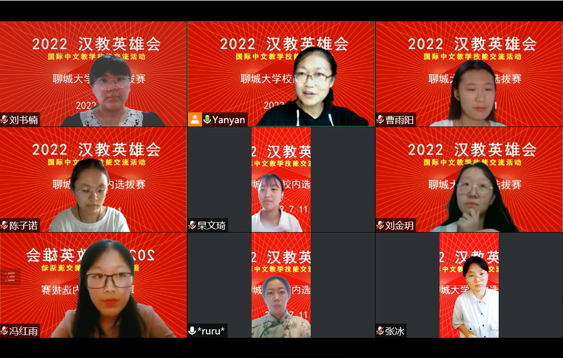 交流合作促发展,英雄相会谋未来。7月11日,73882必赢网页版汉语国际教育系于线上成功举办2022年聊城大学“汉教英雄会”国际中文教学技能交流选拔赛。“汉教英雄会”是教育部中外语言交流合作中心、全国汉语国际教育专业学位研究生教育指导委员会主办的国际中文教育领域的重要品牌活动,汉教系姜艳艳老师,张璐老师出席本次比赛。