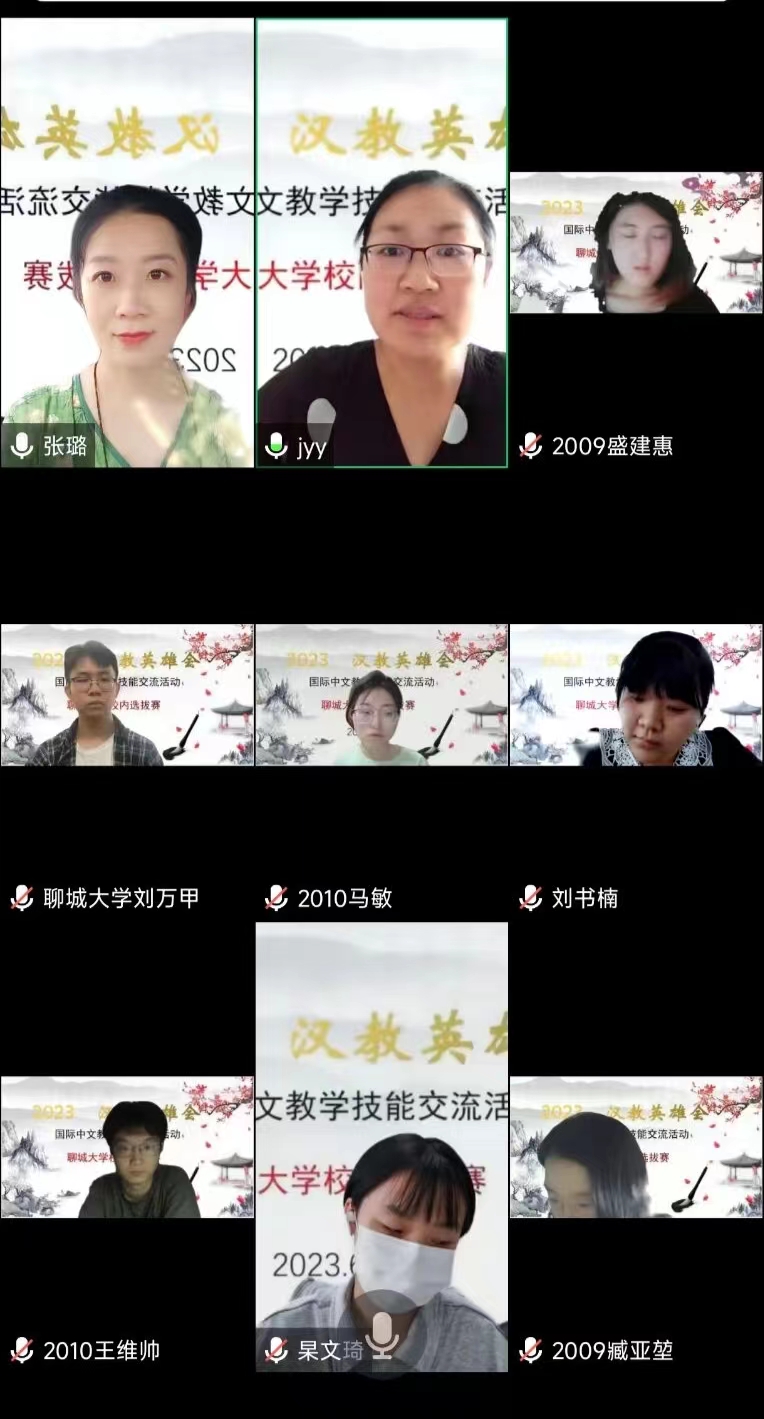 瀚宇之花,盛开聊大。为响应教育部中外语言交流合作中心的号召,推动国际中文教育高质量发展,6月9日下午,73882必赢网页版汉语国际教育系于线上成功举办2023年聊城大学“汉教英雄会”国际中文教学技能交流选拔赛。汉教系主任姜艳艳、副主任张璐出席本次活动。