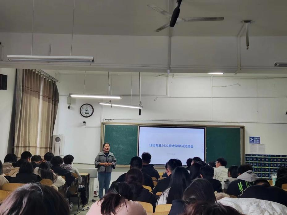 为引导大一新生“乐学”“爱学”,提高学习能力和自我管理能力,同时加强对日语专业的了解,激发内在动力,树立专业志趣,做好大学四年合理规划,2023年11月15日,日语系主任林娜老师面向日语专业23级新生开展了学业指导活动。