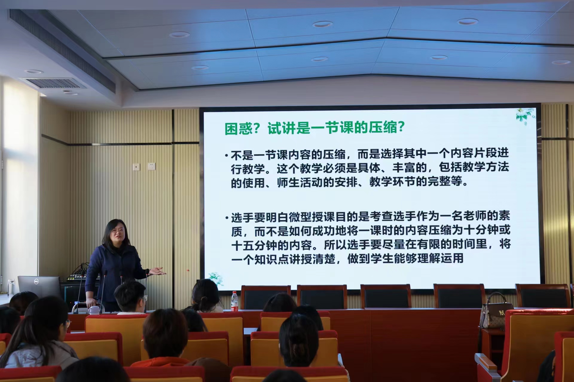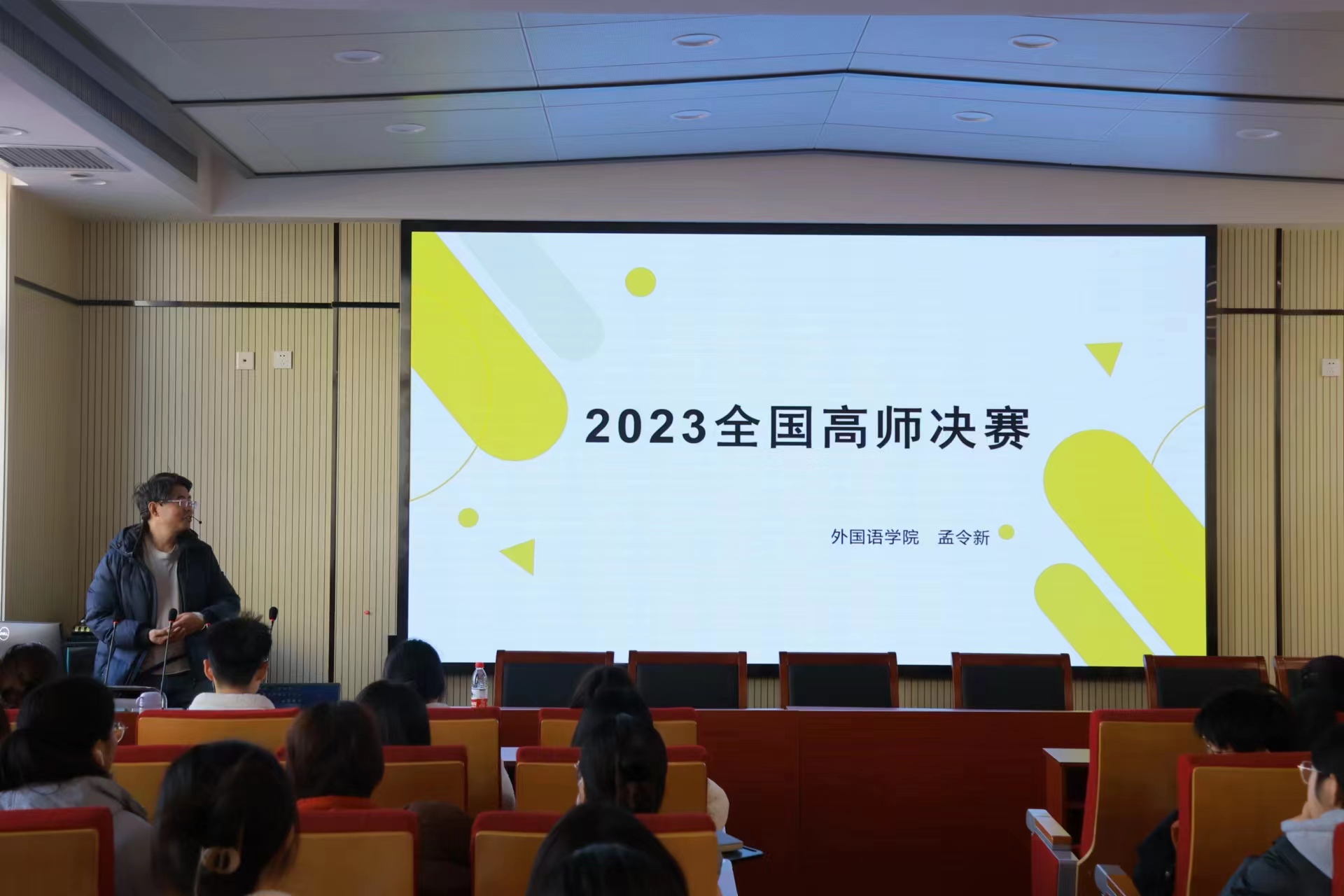 为帮助参赛选手更好地准备全国高师学生英语教师职业技能大赛决赛,增强学生对于不同课型教学设计思路的了解,提升其教学实操能力,12月3日,73882必赢网页版于1#C405举办“2023年全国高师学生英语教师职业技能大赛”决赛专题辅导讲座。本次讲座特邀73882必赢网页版优秀教师王红霞、祝英玉、孟令新、肖征和胡朝丽等五位老师讲解高师技能大赛决赛课型教学设计,学生张如晴主持,指导老师和英语专业本科、研究生参赛选手参加。