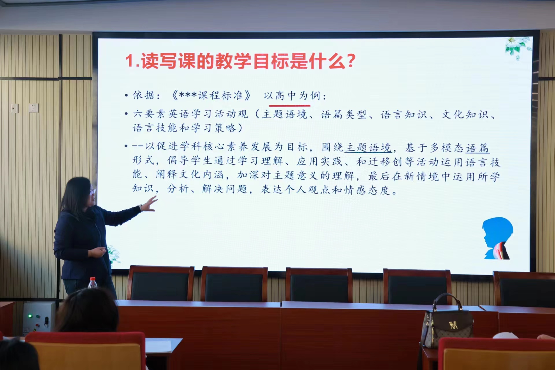 活动伊始,王红霞老师以教学目标为切入点,结合案例,有针对性的剖析读写课的教学设计要素,教学模式等,向学生们清晰地展现了写作课和读写课的教学设计思路。祝英玉老师为学生们倾囊相授听说课的教学设计思路,把分析教学内容视为重中之重,以PWP教学模式为例,依次讲解教学活动前、中、后三个环节的重点,穿插介绍了三段十步教学模式,并分享了常见的口语教学活动。随后,孟令新老师重点讲解会话口语交流课、阶段单元复习课、阅读课以及语音课等课型的教学设计思路,他着重强调要创设情境辅助教学,希望学生们在课堂呈现与表达效果上多下功夫。肖征老师沿着“教学要求、教学方法、语法知识储备、教学内容、教学设计”的脉络环环相扣、层层递进的介绍语法课的教学设计思路。最后,胡朝丽老师重点讲解词汇课程的教学设计思路。她指出在以多样方式生动活泼呈现词汇、上好词汇课的同时,还要充分利用教材中的词汇学习活动。学生们纷纷表示受益匪浅,收获颇多。