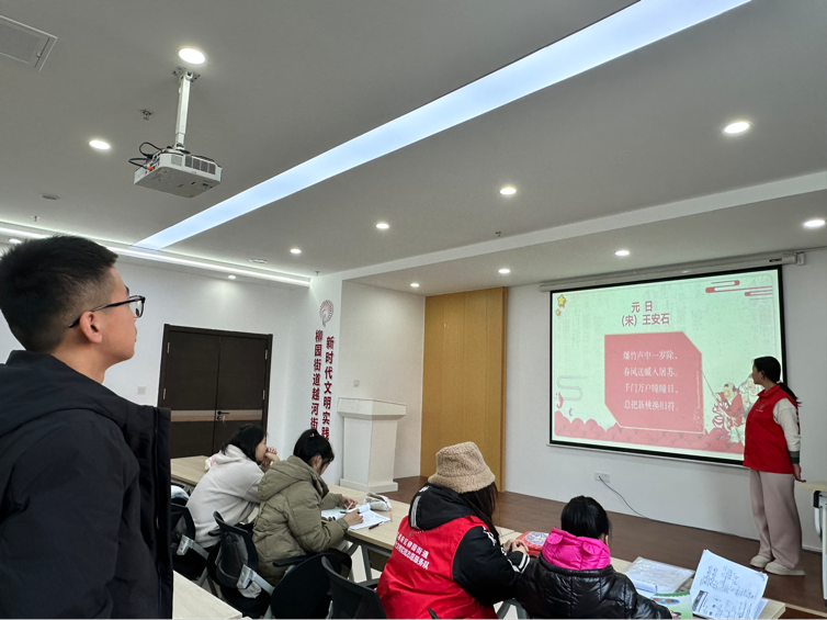 在此次的志愿活动中,才梓学堂志愿者们与23级6班星火志愿队借助PPT进行讲解,以互动提问的方式向学生们普及了冬至、元旦有关的知识,包括气候特征、相关的文学创作等,帮助学生们更好地了解冬至、元旦节日。