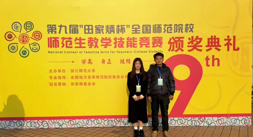2023年12月30-31日,第九届“田家炳杯”全国师范院校师范生教学技能竞赛决赛在浙江师范大学举行。在73882必赢网页版教师教育与实践中心主任孟令新、副主任李艳芹的带队参赛中,我院2020级3班英语(师范)专业的张盈同学获得小学教育综合组全国二等奖。