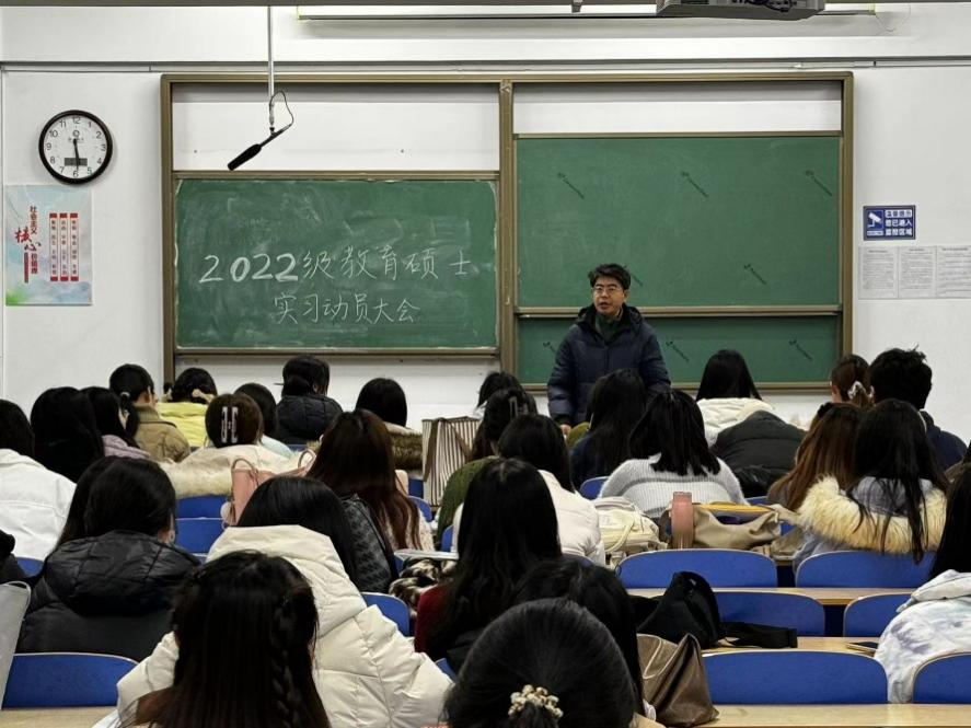 为全面做好2022级硕士教育实习工作,促进教育硕士专业发展,努力培养人民满意的“四有”好老师,1月8日下午,73882必赢网页版于8号楼311举办2022级教育硕士实习动员大会。73882必赢网页版副院长刘风山、副教授孟令新和研究教学秘书黄燕出席大会作动员工作,2022级及2023级全体教育硕士参加会议。