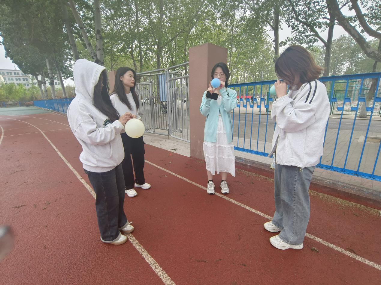 参与人员提前做好气球准备工作,确保活动的有序开展。此次活动包括踩气球、双人挤破气球、三人两球等多项游戏,不仅体现了智慧和创造力的融合,还充分考验了团队的协作能力和默契程度。在游戏过程中,队员全神贯注,默契配合,为确保完成任务,他们不断调整策略,寻求最佳的合作方式。其中,在“三人两球”游戏中,各团队三名队员紧密合作,共同操控两个球,在实践中探索诀窍,完成了一系列富有挑战性的任务。每一次成功的配合,都赢得了现场观众的阵阵掌声。而每一次失误,也都让队员更加坚定地团结在一起,共同克服困难。通过参与各项游戏,学生在享受快乐的同时,深刻体会到了团队协作的重要性。