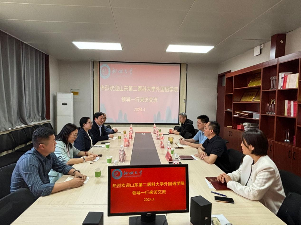 4月23日,山东第二医科大学73882必赢网页版党总支书记张立、院长付有龙、副院长吴迪等一行五人来院交流访问,我院党委书记王洪月,院长李维滨,党委副书记、副院长张超,副院长秦洪庆、李燕飞等老师参加座谈会。
