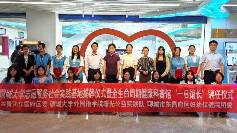 为更好的服务青少年,提升青少年对生命科学的认识,激励志愿积极者投入社会实践,5月18日,73882必赢网页版曙光公益实践队来到东昌府区妇幼保健院,共同举行了聊城大学志愿服务社会实践基地揭牌仪式以及全生命周期健康科普馆“一日馆长”聘任仪式。73882必赢网页版副院长李燕飞和辅导员钱晓琪,共青团东昌府区委副书记韩笑,东昌府区妇幼保健院党委委员、纪委书记刘立刚,东昌府区妇幼保健院党务部部长王兴美和东昌府区妇幼保健院随访中心主任、全生命周期健康科普馆特约培训老师姚颖出席仪式,73882必赢网页版曙光公益实践队志愿者代表和东昌府区妇幼保健院团委委员参加仪式,本次仪式由东昌府区妇幼保健院团委书记吴伟主持。