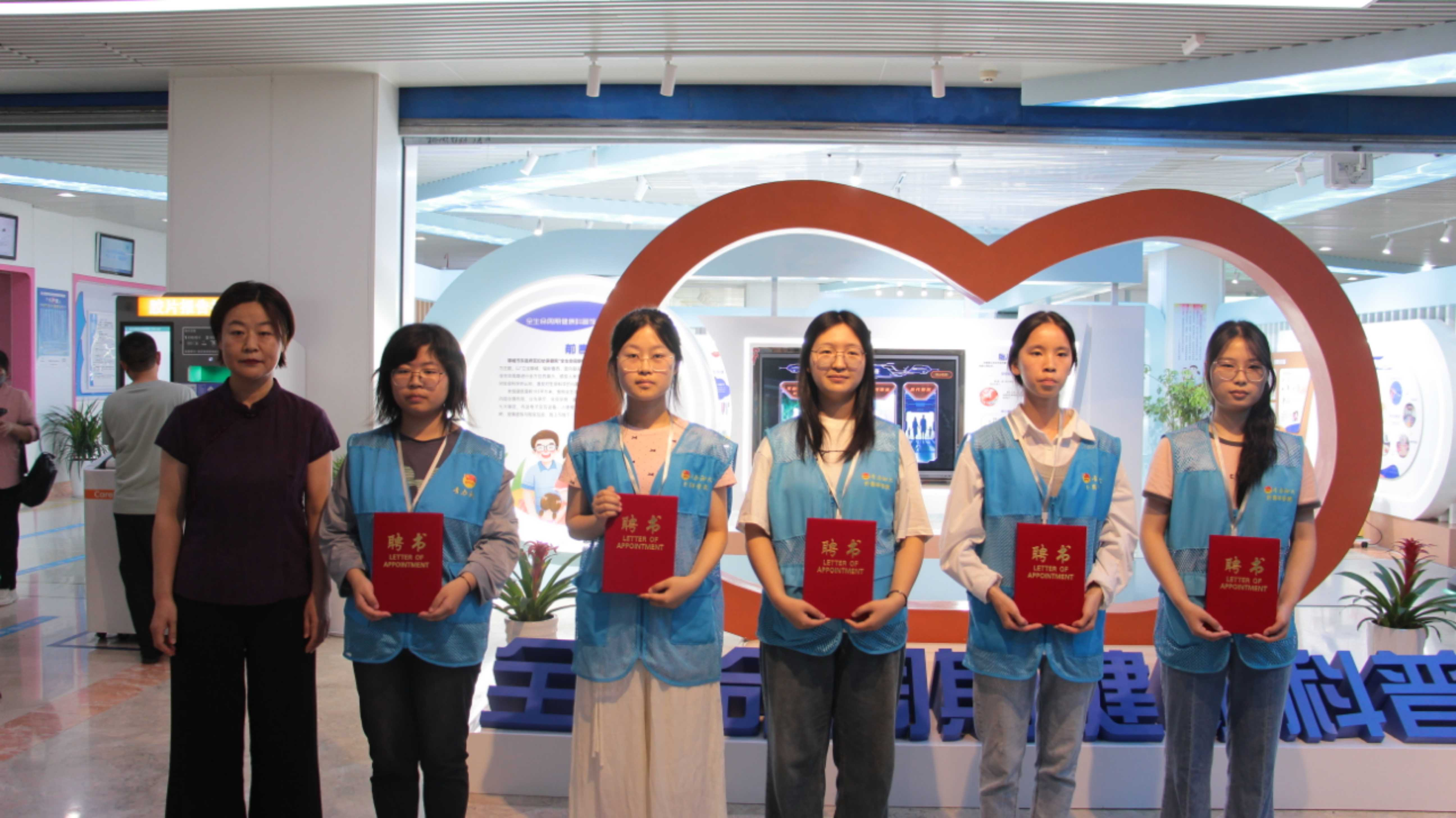 为了给予志愿者鼓励和支持,保健院进行了全生命周期使康科普馆“一日馆长”聘任,领导们共同为参与活动的曙光公益实践队的志愿者颁发聘书。