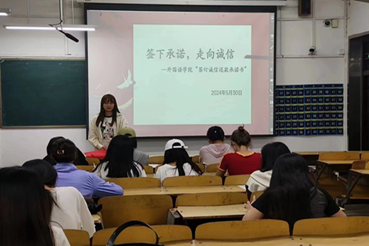 活动伊始,钱晓琪向学生详细介绍了国家助学贷款政策的背景、目的及意义,并强调了诚信还款的重要性,唤醒学生自我教育和自我完善意识,引导学生自觉加强诚信建设,养成诚信待人、诚信处事、诚信学习、诚信立身的良好习惯。她指出,诚信是中华民族的传统美德,也是社会主义核心价值观的重要内容。每一位受助学生都应该珍惜这份来之不易的资助,严格遵守还款协议,按时足额还款,用实际行动践行诚信做人的理念。随后,在认真严肃的氛围中,贷款学生签订了诚信还款承诺书。他们表示,将牢记国家和学校的关怀与帮助,以实际行动回馈社会,同时也将以诚信为本,恪守承诺,按期还款,为构建诚信校园贡献自己的力量。