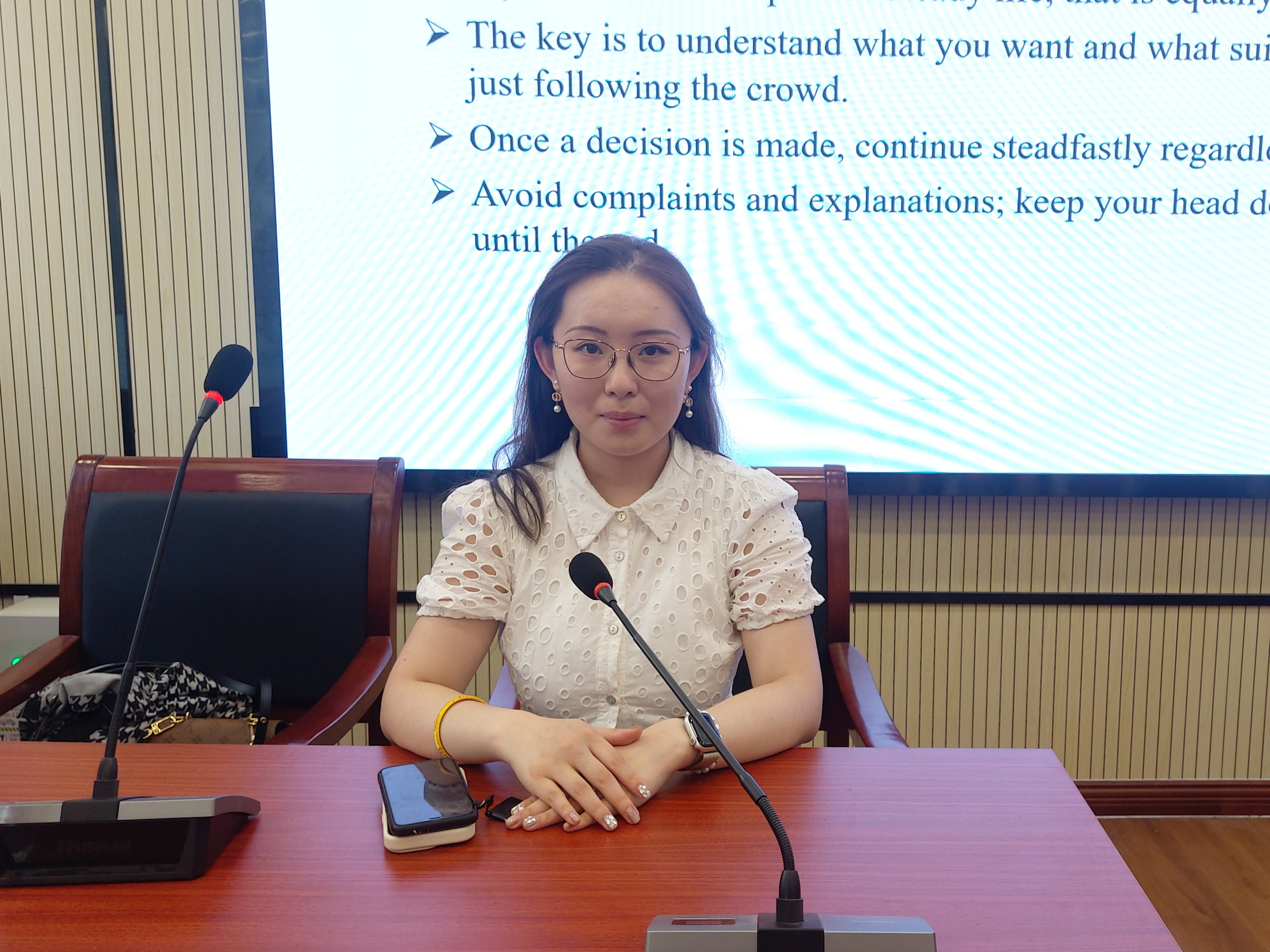 活动开始前,秦洪庆副院长发表了感谢致辞。讲座伊始,班学婷讲述自身学习情况和国外留学经历以及教学经历。她从学位及职业追求分析了当今大学生面对的问题,具体解答了读硕读博、是否直接进入职场等疑问,同时介绍了英国硕士课程的语言和教育相关专业选择,分享自身在外国的生活感受和文化差异。讲座现场气氛热烈,学生积极提问,班学婷耐心地为他们一一答疑解惑。她针对人生的探索和选择给出建议并表示希望学生敢于挑战,勇于蜕变,大胆开启留学新征程,去遇见,去探索,磨砺青春,完善自身。座谈会深入浅出、精彩纷呈,学生纷纷表示受益匪浅,对出国留学有了更清晰的认知,更加坚定了他们追求梦想的决心。
