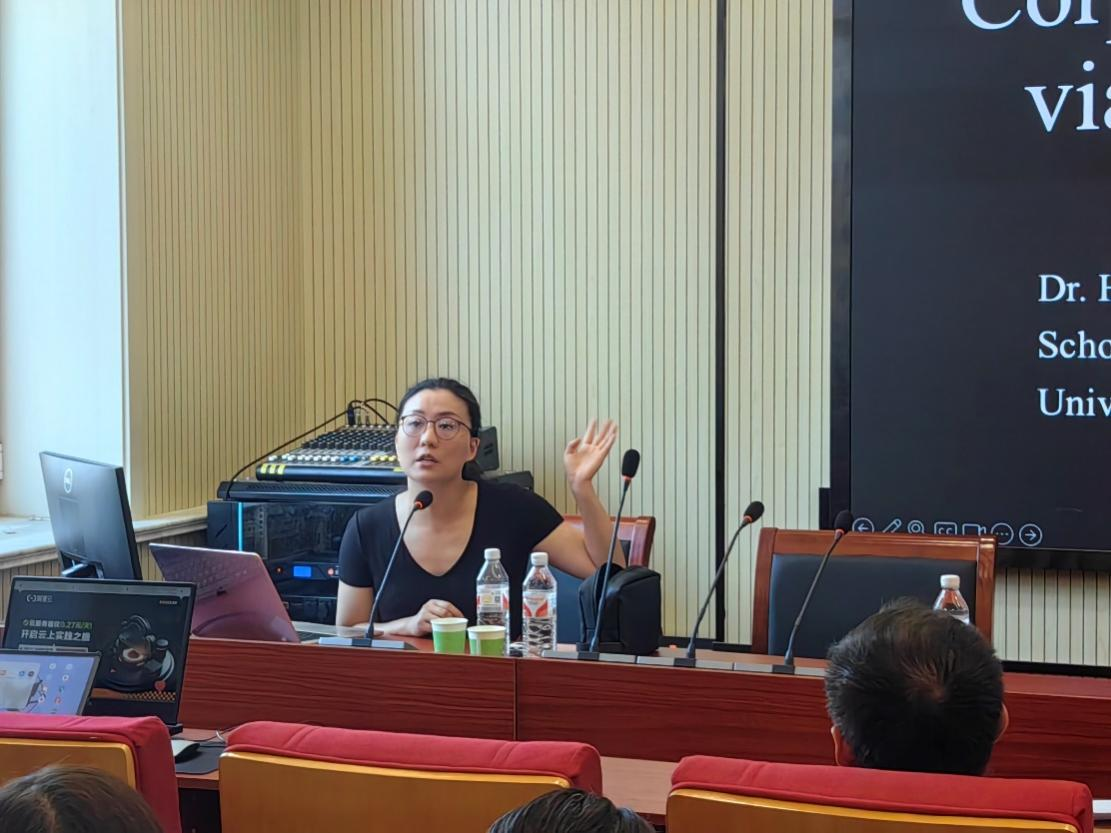 李院长首先对石主任应邀分享表示感谢并对石主任进行简要介绍。石主任研究兴趣包括构式语法、语料库语言学和R语言定量研究方法等,曾在Journal of Linguistics, Journal of Pragmatics, Journal of Chinese Language and Discourse等SSCI/ESCI期刊以及语言学书刊上发表学术论文多篇,曾获2021南京政府“海归人才奖”,美因俄勒冈大学2016年“最佳汉语辅导老师奖”等奖项。