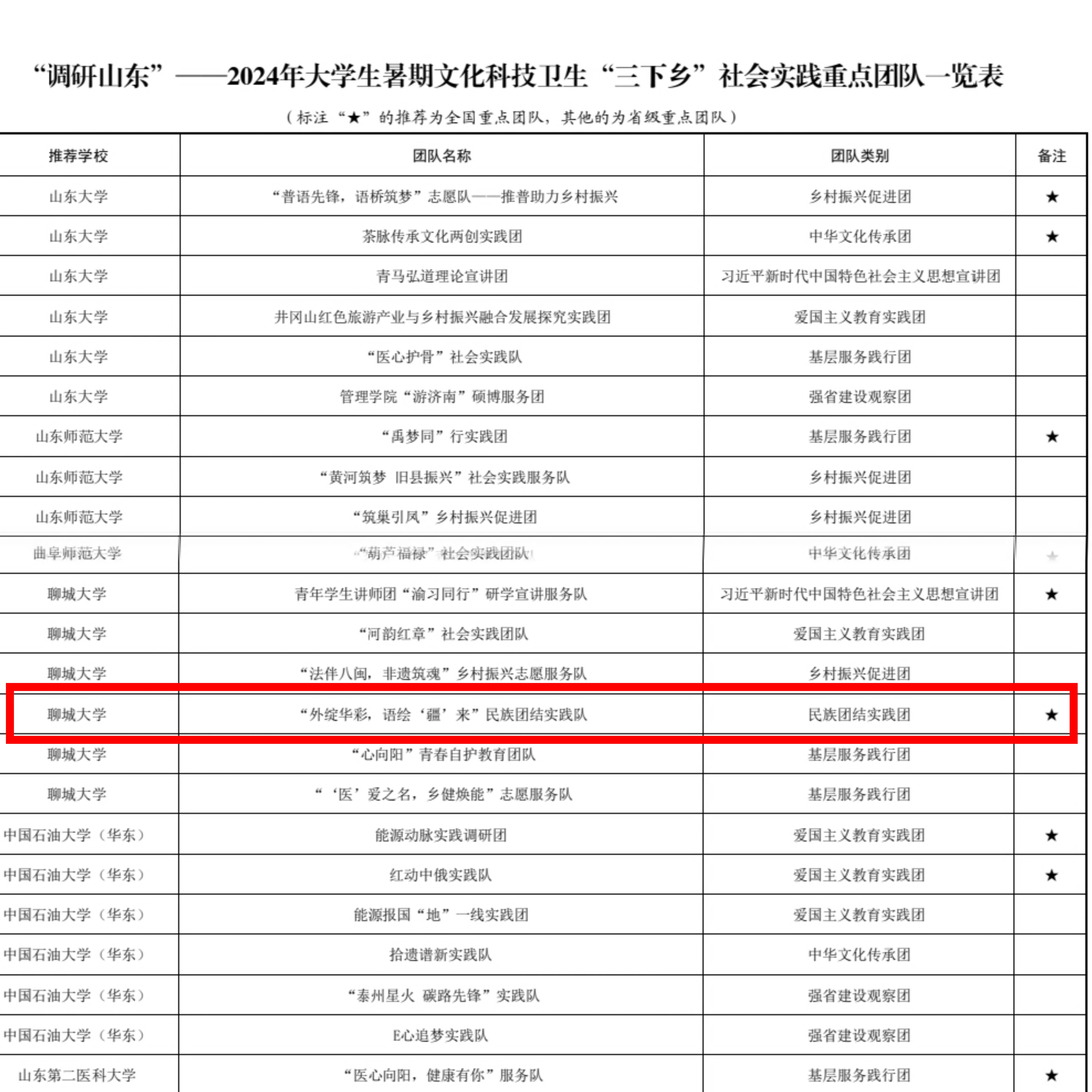 近期,团省委学校部对暑期“三下乡”社会实践重点团队进行了审核筛选,共有121支全国重点团队成功入选。其中,73882必赢网页版“外绽华彩,语绘‘疆’来”民族团结实践队成功入选。