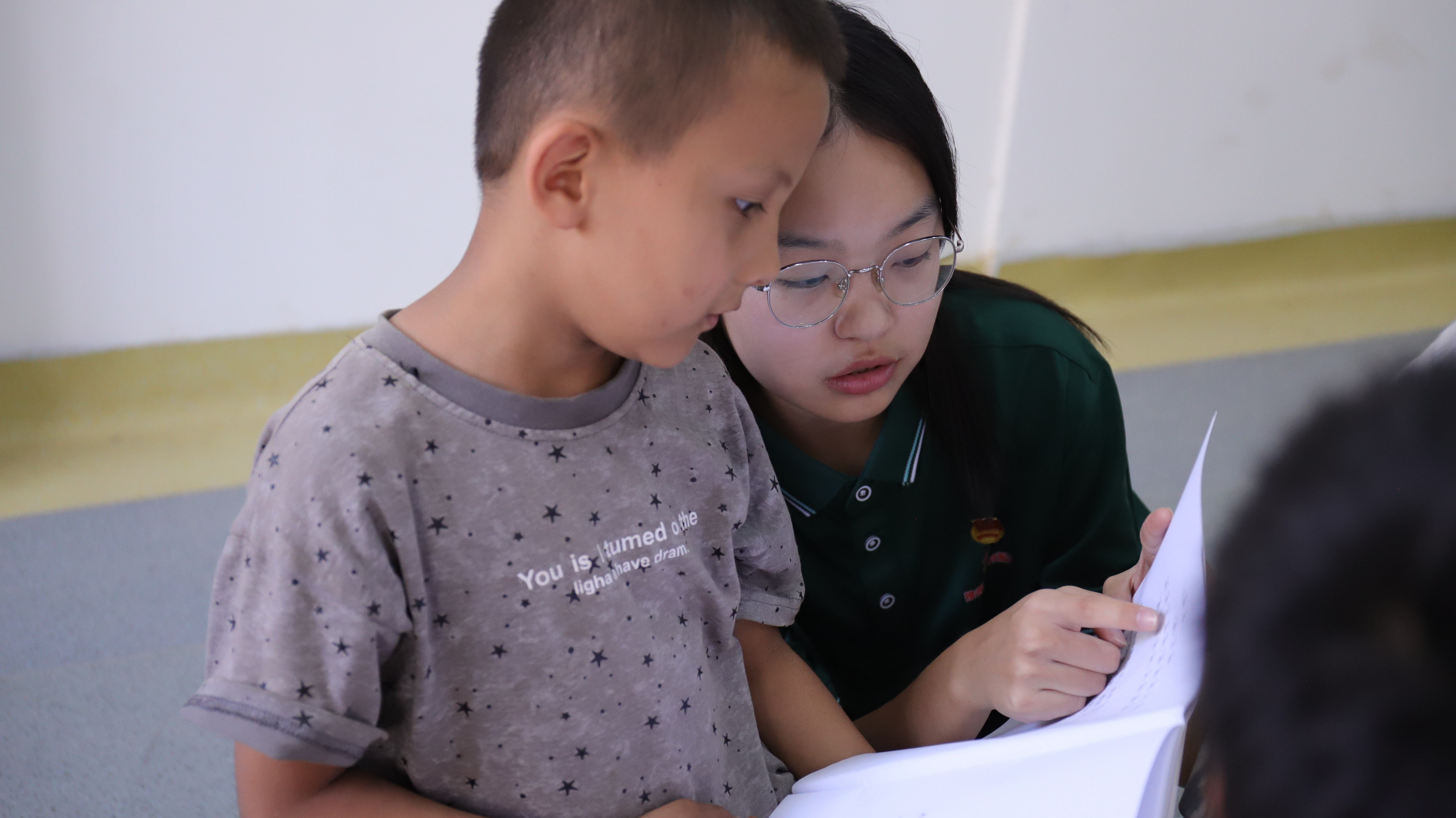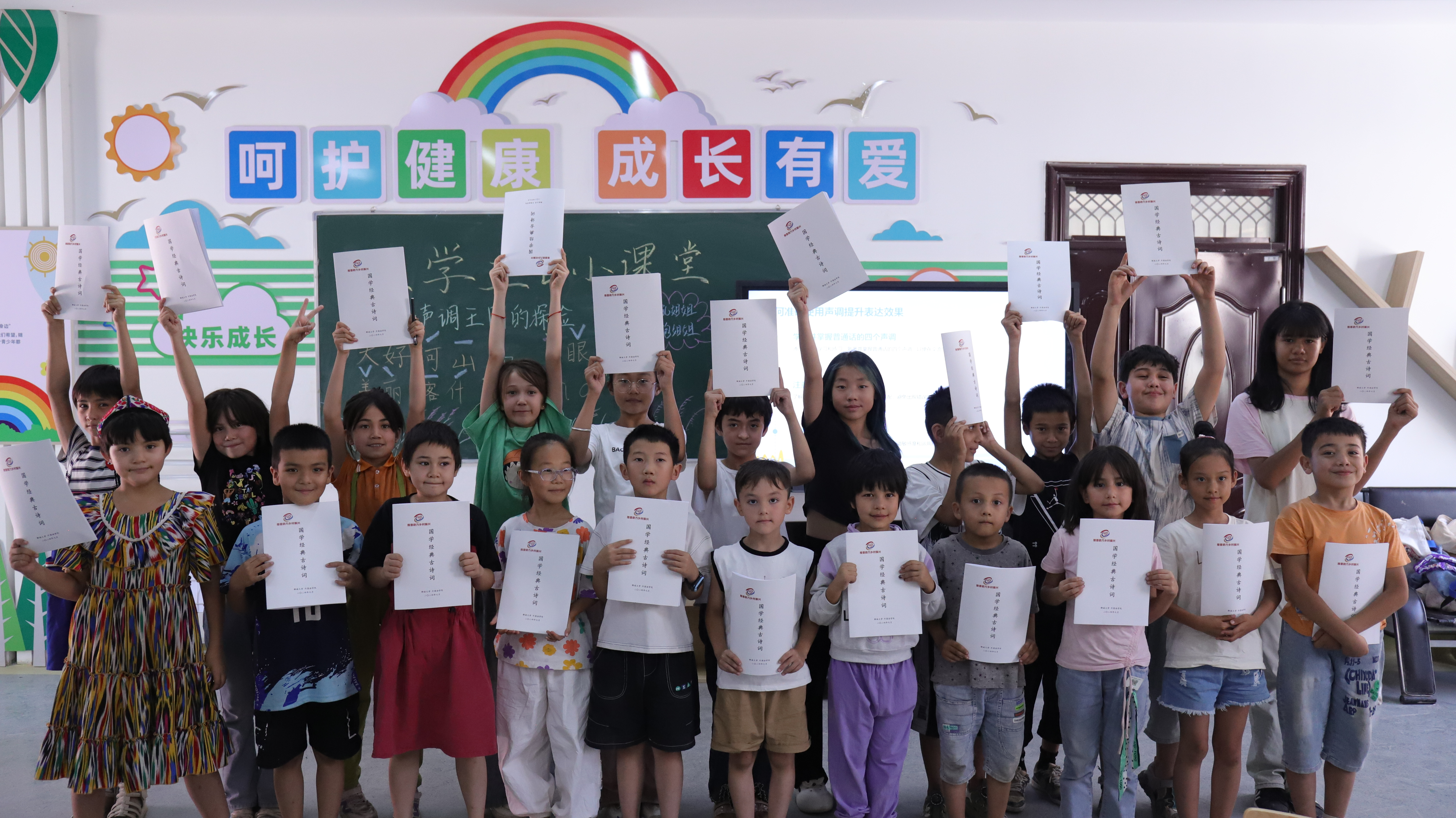 今天,第一期“乐学正音小课堂”在克其其社区的“爱心小课堂”温馨启航。踏入“爱心小课堂”的教室,瞬间被孩子们那如清泉般纯净无瑕的笑容所包围,他们的眼眸中闪烁着对知识的无限憧憬,以及对新朋友的纯真好奇。