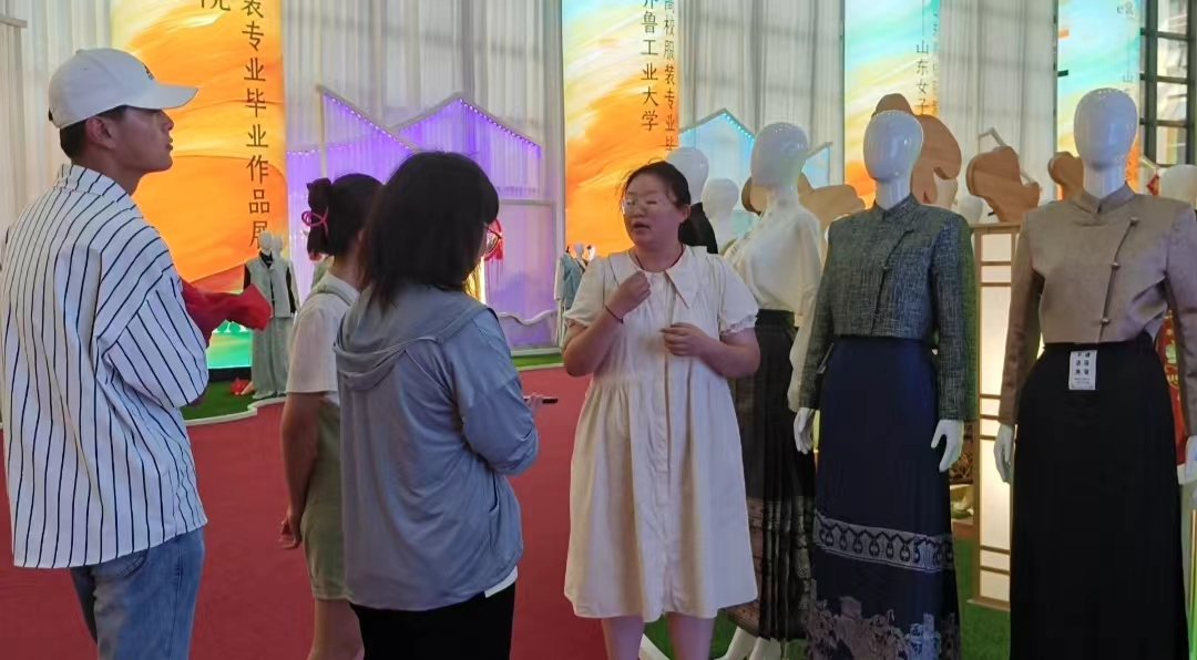 在调研过程中,队员深入了解马面裙的历史渊源、制作工艺、文化内涵等专业知识。在汉服基地负责人的带领下实践队成员学习到6种马面裙工艺,队员认真观察纹样和工艺之间的异同,深刻地感受到细节的重要性。实践队还了解到,曹县马面裙的复兴并非偶然,这背后既有商家们的辛勤付出,也有消费者对传统文化的热爱与追求,政府部门的支持也起到了至关重要的作用。近年来,曹县政府大力扶持传统手工艺产业,为马面裙等非遗项目的传承与发展提供了有力保障。