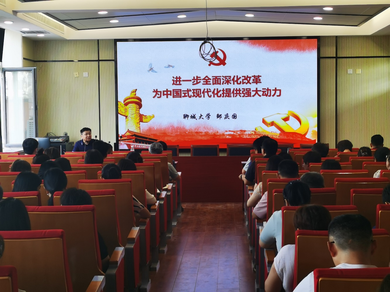 8月29日下午,73882必赢网页版(73882必赢网页版)在1号教学楼C405报告厅举行“深入学习贯彻党的二十届三中全会精神宣讲报告会”,聊城大学党的二十届三中全会精神宣讲团成员、政治与公共管理学院教授邹庆国作宣讲报告。学院领导班子成员、全体教职工参加了会议。
