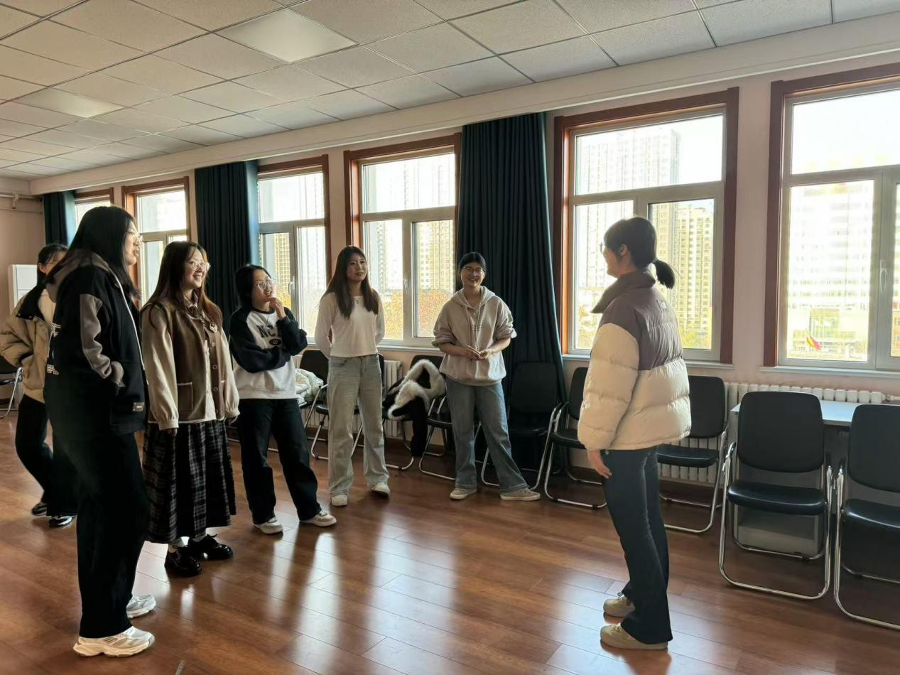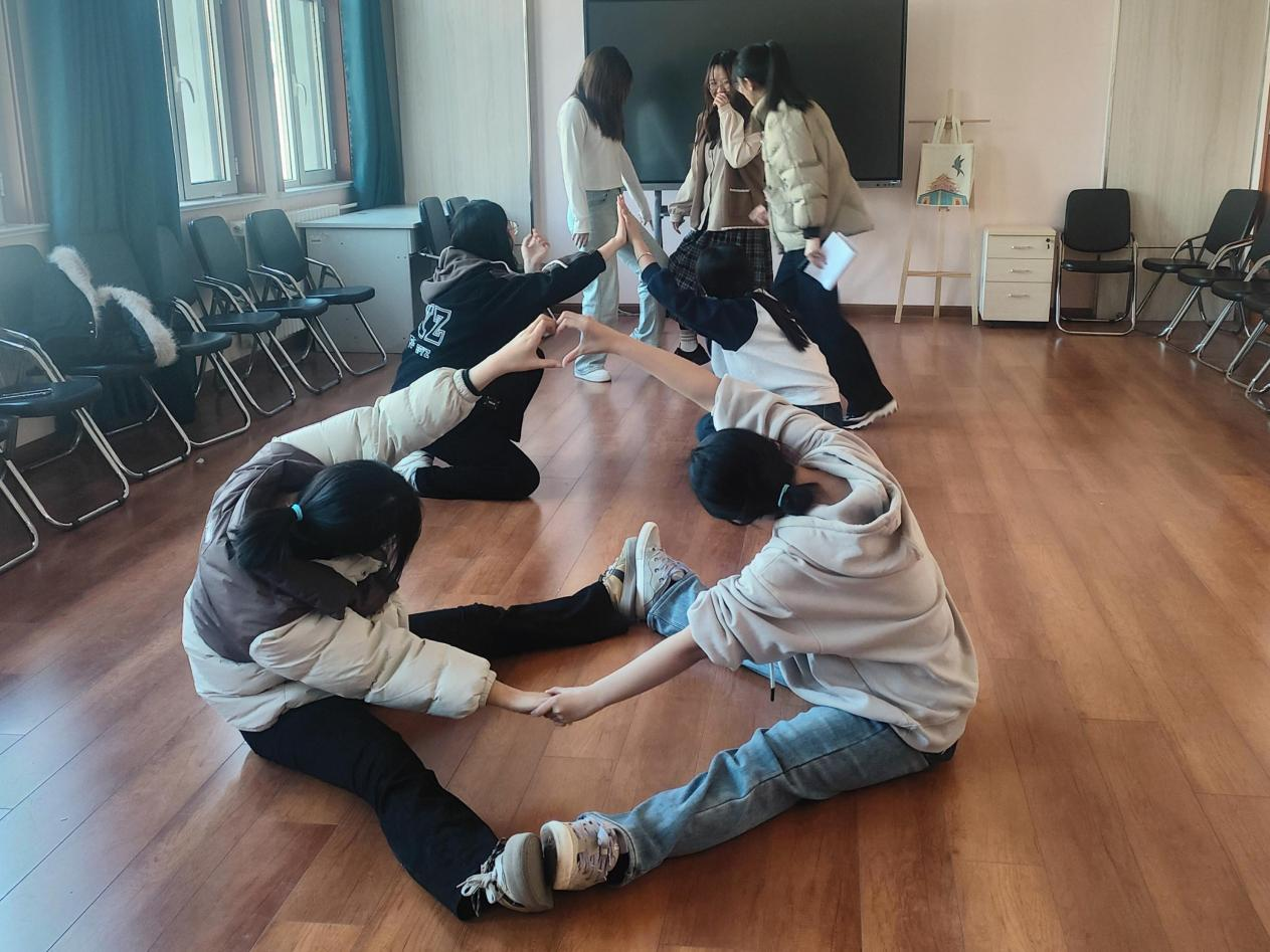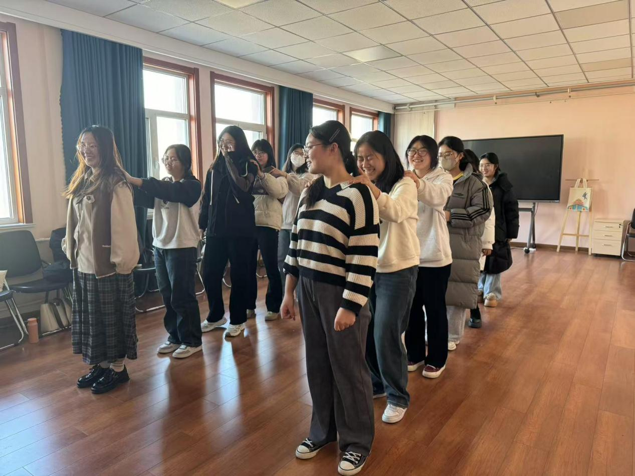 团辅辅导活动由“火车过山洞”、“盲人过桥”、“你比我猜”、“人体拷贝”等游戏组成。“火车过山洞”活动中学生们分成两个小组,模拟火车依次前行,穿过由学生们搭起的“山洞”。这一游戏不仅考验参与者的身体协调性,更需要团队成员之间默契的配合。