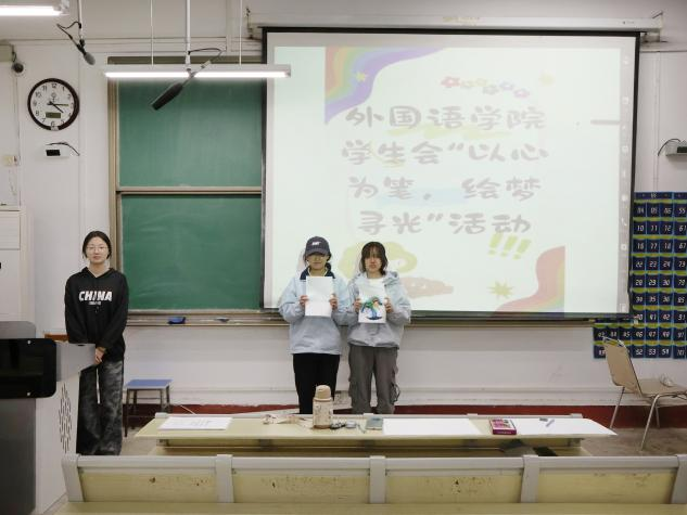 活动伊始,活动负责人详细阐释了活动目的与注意事项。活动第一部分以 “想象中的动物” 为主题,鼓励学生画出心中的小动物。学生充分发挥想象力,有的绘制了色彩斑斓的水母,有的创作了简单有趣的史努比小狗。绘画结束后,负责人与学生深入交流,通过画作了解其内心世界。