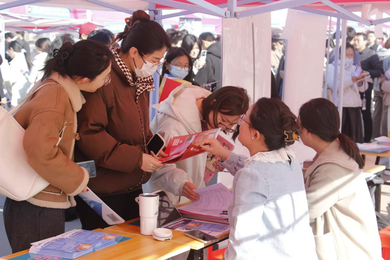 招聘会现场人头攒动,气氛热烈。446家来自信息技术、教育文化、金融经济、生物医药、智能制造等多个行业领域的企业齐聚一堂,共提供就业岗位14000余个,充分满足不同专业毕业生的求职需求。8500余名学生穿梭于各企业展位间,手持精心准备的简历,积极与招聘人员交流,了解企业情况、岗位要求、薪资待遇等信息,现场投递简历并进行初步面试。