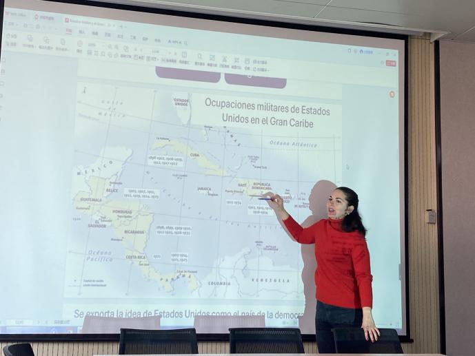 2025年4月7日,西班牙语专业邀请哈瓦那大学历史系助理教授玛丽斯莱迪斯·孔塞普西翁·佩雷斯(Marisleidys Concepción Pérez)举办了题为“美国对大加勒比地区政策调整”的学术讲座,系统梳理了美国自19世纪至今在该地区的政策变迁,揭示其从“扩张主义”到“战略干预”的核心逻辑及对地区发展的深远影响。