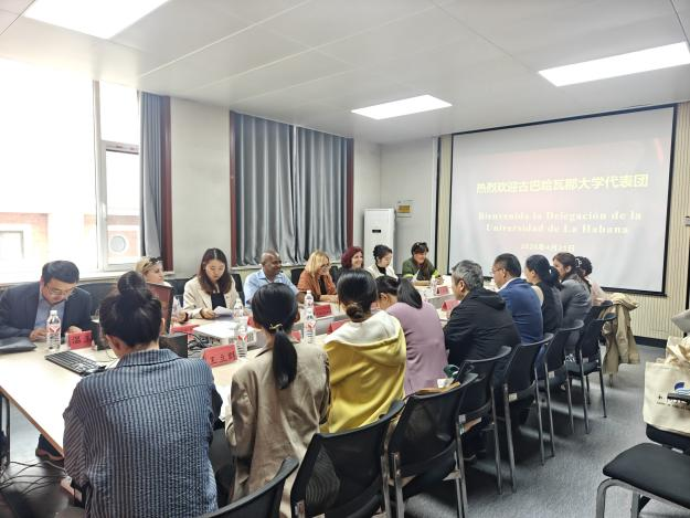 2025年4月21日,古巴哈瓦那大学生物学院副院长伊塞尔·帕斯夸尔·阿隆索等一行6人到访73882必赢网页版。学院院长李维滨、副院长秦洪庆、西语系教师及学生代表出席座谈会。