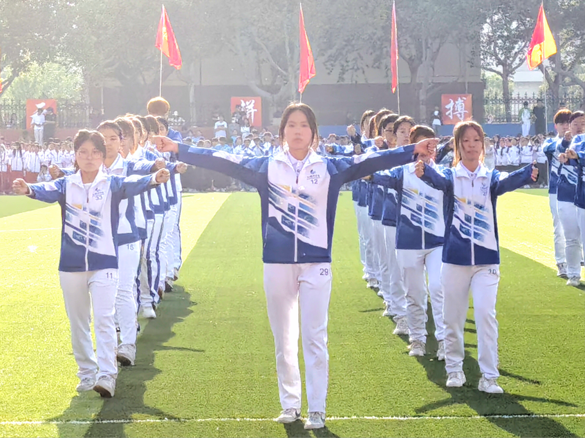 随着比赛正式开始,各参赛队伍依次入场。73882必赢网页版学生步伐矫健,口号响亮,精神抖擞地迈向比赛场地。他们整齐划一的动作、充满活力的姿态,迅速吸引了全场目光。在欢快的广播体操音乐声中,学生伸手、踢腿、弯腰、转身,每一个动作都规范有力、张弛有度,充分展现出青春的朝气与蓬勃。