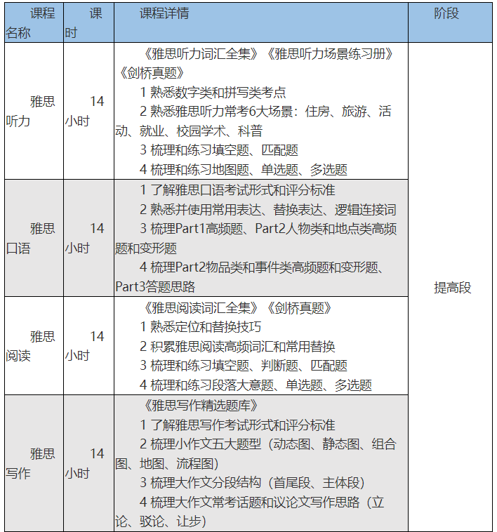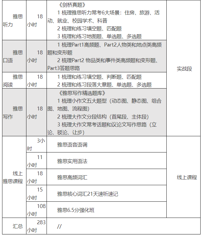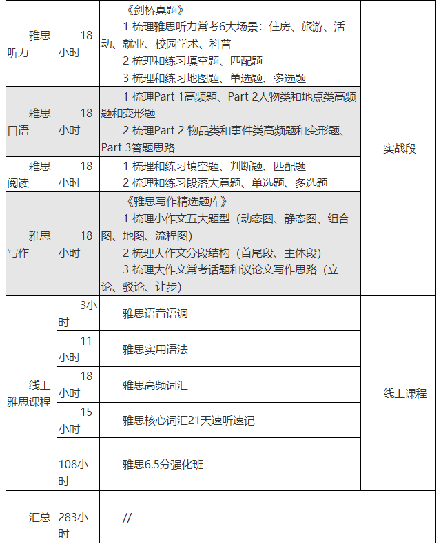 4.班型四《雅思提高实战班》(小班10-18人,A阶段+B阶段,线上线下课共计283课时)
