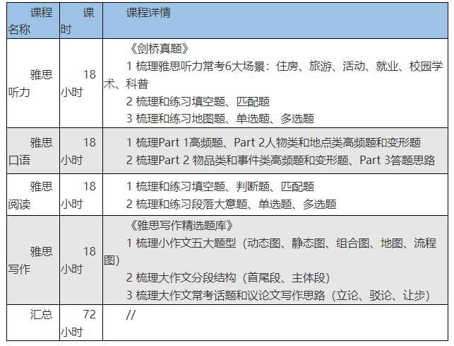 5.班型五《雅思考前冲刺班》(小班10-18人,线下课共计72课时)